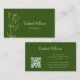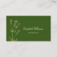 Professionell-affärskort med en hand plockade-jokerblomma med guld-konturteckning med text i sans serif typsnitt på gröntens bakgrund. Modern minimalistisk blommigt har en design med en mall för QR-koden på baksidan.