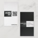 Affärskort av modernt lodrät med minimal snyggt. Snyggten och den enkla designen har de två bästa färgerna av den minimalistiska rörelsen - svart och elfenbensvit. Kommer med lättredigerbar namn, QR-kod och kontaktinformation.