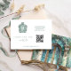 Komplettera din inbjudan med den här eleganten och det unika QR-kortet och OSA online-kortet, där klassiskt sofistikerat passar in i modern charm. Kortet för QR-kodhöljet har ett vackert mongram i lush grönt, centrerat med en bakgrund för blekens grönt som belyser parets initialer. Med en mall som är enkel att använda överträffar den här designen elegans utan tidslinje, kompletterad med elegantens ordalydelse i en blandning av klassisk typografi och delikat handskriven kalligrafi. Lägg till URL-webbplatsen adress och Zazzle tar hand om resten, skapar en QR-kodbild och placerar den på högernas plats åt dig! Baksidan har en känslig vattenfärgsliggande scen i grönt, blått och tealnyanser, med en charmeringsdörr, och möjlighet att lägga till - eller inte lägga till - ditt monogram initialer på dörren ram, samt en textrad nedanför eller ta bort den. Del av den fullständiga samlingen "Grönt av tidslösa element". Det finns också samordningsramar. Finns även i två andra fantastiska vattenfärgsscenerier som ger möjlighet att välja det som bäst kompletterar ditt bröllop-tema.