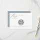 Elegant Nautical Beach Seashell Modern Script-kort med skuggor av havsskumblått och lera grått. Det finns en vattenfärg i flaska överst med en samling känsliga stjärnor och snäckor. Din QR-kod, parad med vår moderna chic-skripttypografi, gör detta till perfektens svarskort för din elegant- eller målbröllop. Kontakta oss på cedarandstring@gmail.com om du behöver hjälp med designen eller matchande produkter.