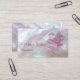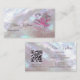Detta eleganta lyxiga visitkort har en genomskinlig rosa blomma på en iriserande pärlmoderdesign och ett elegant handskrivet typsnitt. På baksidan finns en skannbar QR-kod och en anpassad mall för namn, adress och sociala medier. Detta professionella glamourösa visitkort är perfekt för salonger, sminkartister, smycken med mera.