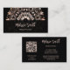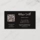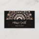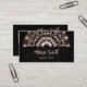 Den övre delen av framsidan har en roséguld invecklad blommig mandala på svart bakgrund. Den nedre delen har ett svart textfält med en elegant skrift. På baksidan finns en skannbar QR-kod för din webbplats. Perfekt för salong, hår- och makeup, skönhet, yogalärare, boutique eller någon kvinnlig entreprenör.