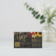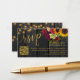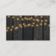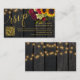 Rustik elegant solrosor och rosor bröllopsinbjudan MINI STORLEK online RSVP bifogad kort med skanning QR-kod (automatiskt genererad med din länk) på en mörkbrun lada träbakgrund med strängar av gnistrande ljus.