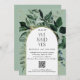 Modern, vi sa ja, Elegant Sage Grönt Botanical Grey-fotot bröllop meddelande med QR-kod. Mottagarna kan söka igenom streckkoden som länkar till webbplatsen för bröllop som visar dina foton med mera.
