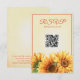 Varma och glädje för dina bröllopsinbjudningar med vår QR-kod Solroskort - ett charmerande val för land, ladan eller bröllop utomhus. Dessa glatta responskort har klara solrosor med vattenfärg och bakgrunder i gult och orange av rik, som blåser både framifrån och bakåt för att få ett vackert sammanhängande utseende. Designad för att matcha bröllop-skrivbordet som är rikt på rustika, boho eller solrosmagasin blandar den här OSA kort elegans med charm från landsbygden. Den texturerade estetiken framkallar glöden av den sena sommaren och tidigt fall, skapar det idealiskt för säsong firande. Anpassa enkelt med dina svarsalternativ och bröllop-information. Oavsett om du planerar en ceremoni för chic eller ett solrosininspirerat firande, så fyller de här korten din inbjudan till stil. De trycks på högkvalitativa karddjur för en förstklassig känsla och ger ett härligt första intryck. Perfekt för brudar och brudar som vill fånga solrosvibe bröllop med en hjärtfull, handgjord beröring.