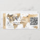 Boardingkortet Biljett Guld Flygplan vid destinationsbäckenet Spara datumet med hjärta och flygplan med tropiska löv. Lägg till din QR-kod