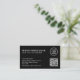 Enkel, klassisk och elegant svartvit professionell med logotypen, en skannerbar QR-kod som är länkad till webbplatsen och din namn, titel och kontaktinformation (t.ex. e-post, telefonnummer, företag namn och utskick adress) i modern vit typografi. Ange enkelt URL:en för webbplatsen adress för att automatiskt skapa QR-koden. Lägg till ytterligare information på baksidan om du vill eller lämna tom.