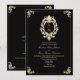 Elegant svart och guld barock bröllopsinbjudan med lyxig monogram-krön, vintage-rullar och utsmyckad ram. Denna formella design inkluderar en QR-kod på baksidan för enkel RSVP via din bröllopswebbplats. Perfekt för glamourösa, lyxiga och formella bröllop i svarta och guldtema. Idealisk för par som vill ha en sofistikerad och tidlös inbjudan med matchande RSVP, detaljer, program, meny och mer.