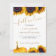 Modern gult guld boho-chic solblommor och vattenfärgspumpa Fall i Kärlek-budgeten har ett överkomligt pris, allt i en bröllopsinbjudan med anpassningsbar foto, skannningskod till webbplats och onlinens osa med ett trendig golden handskriftsskript. +++++ Lämpligt för en modern, modern, modern sommarträdgård eller höst som faller utomhus på jordbrukshuset bröllop.