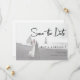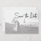 En enkel modern besparing av datumkortet. Anpassa den här minimalistiska svartvita designen så att du får ditt foto, dina personliga detaljer och meddelande. Skannerbar QR-kod som gör att gästerna kan söka och uppdatera behållan på nyheter och information om bröllop.