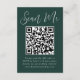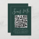 Gör det enkelt för gäster att ta OSA till bröllop eller evenemanget med dessa moderna bröllop OSA med QR-kod. Visningen "Skanna mig" i höljet i elegant bröllop i ett vitt skript med en bakgrund för grönt i skogen. Anpassa kortet med ditt OSA-datum, bröllop webbplats och instruktioner för gäster med hjälp av de textmallar som finns. Kortets baksida ger utrymme för ytterligare text och/eller foton. Designad att samordna med vår samling Simple Script bröllop.