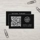 Detta moderna svarta QR-affärskort och företagets logotyp är enkelt att anpassade med din QR-kod, logotyp och kontaktinformation.