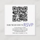 QR online OSA modernt omringningskort för periwinkle blue bröllop. Gästerna kan använda det här kortet till onlinens OSA med hjälp av QR-koden. Baksidan är av periwinkle blue färg.
