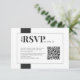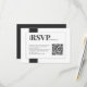 Det här bröllopet OSA har ett vackert fet serif-typsnitt med detaljer i ett kontrasterande rent teckensnitt med versaler, allt i ett modernt geometriskt ram, och är skapat att samordna med vår "Minimal Fold Bröllop"-samling. Det här svarskortet är enkelt att anpassade med din online OSA och din egen QR-kod för att skicka dina gäster direkt till din bröllop webbplats på kortets framsida, och briden och rummens vita monogram på den fasta mörken grått bakåt.
