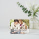Modern, minimalistisk, enkelt höljeskort för Bröllop-webbplats med din QR-kod. Ett foto med textövertäckning. Burgundy tillbaka.