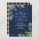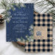 Skapa perfektens bröllopsinbjudan med den här roliga vintern. Med marint blåträ, silver glitter snöflingor som faller på vattenfärgsgrå, med handskrivet manustypografi och glatt sträng ljus, har kortets baksida en brun och marin buffel som pläderar struktur med QR Code OSA & Bröllop Details. Inbjudningskort för Elegant av upphovsrätt, alla höger reserverade.