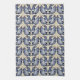 Kökshandduk med mönster av vaktelfåglar och dekorativt inslag på en ljusgrå gult bakgrund.