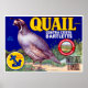 Vintage frukts-låda-etikett för Quail-märket Contra Costa Bartlet-päron från Kalifornien.