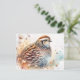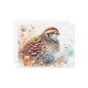 This avian postcard features watercolor artwork capturing the essence of a quail, surrounded by a delicate interplay of soft floral elements and warm earthy tones. The intricate details of the bird's plumage are highlighted with subtle strokes, blending seamlessly into a dreamy background of blossoms and other botanical elements. Perfect for nature enthusiasts and art lovers, this enchanting piece exudes tranquility and showcases the harmony between wildlife and artistic expression.