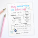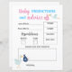 Budgetprognoser från baby och råd till föräldrarna pappra lakan som era gäster kan fylla på genderna visar party. Ljud ut fråga dina gäster kan spela. Utformning i blått och rosa med söta illustrationer av storkfåglar som levererar flicka och pojke. Anpassa eller ändra teckensnitt, färg och text genom att klicka på knappen för att redigera designen.
