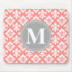 Quatrefoil Fleur-De-Lis Coral Rosa Grått Monogram Musmatta