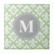 Quatrefoil Fleur-De-Lis Mint Grönt Grått Monogram Kakelplatta