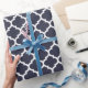 Marinblå quatrefoilmönstergåva som slår in papper. Högkvalitativ utskrivavet matte, glansigt, linne eller Tyvek papper gåvasjal. För ogeequatrefoil för klassiker som marockansk design göras och skrivs ut i USA. Ideal för födelsedag, årsdag och bröllopgåvor eller julklappar.