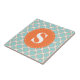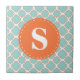 Quatrefoil Mönster Turquise Orange med Monogram Kakelplatta