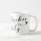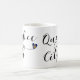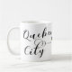 Mugg med snyggt-skript typsnitt, med flagga Quebec City i ett hjärta.