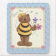 En underbar liten nalle klädd som humla med en krona och en blombukett.