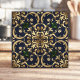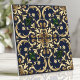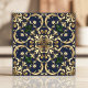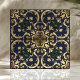 Queen Esther Damask Rulla Navy Blue Guld Kakelplatta