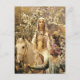 Drottning Guinevere-vykort. Oljemålning på arbetsyta. Drottningen Guinevere har den legendariska armeniska artriandrottningen som kör en vit häst med vita vår-blommar. Hennes kvarhållare går bredvid henne och bär en lila krona av blommor. En söt gåva till fläkt av Arthurian Legend, Queen Guinevere, Pre-Raphaelites och Fantasy Art.