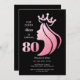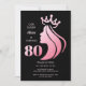 Queen Krona Rosa Glitter Black 80:e födelsedagen Inbjudningar