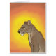 Det här är en digital målning av en leoness med en vacker afrikansk solnedgång bakom henne.
