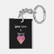 Förklara det klart och stolt: kärlek är helig. Den här nyckelkedjan har ren vit text och en fet bild av glitter-hjärtat - en påstående av sanning och omsorg som du kan bära var som helst. Grattis till kärlek och behålla i nycklar! Bild-ID: Nyckelkedja med den svarta bakgrunden "Queer Kärlek Is Helig" i vit text, ovanför ett glitterhjärta för rosa och orange.