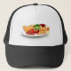 Cheddar ostquesadilla'sen med ny salsa för guacamole och skivad röd chilipeppar som överträffas med guacamole och cilantro