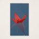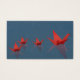 En familj av rödorigami-kranar flyter över en bassäng stilla vatten medan regnen i stänk kring dem.
