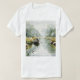 The painting is a watercolor depicting a boat with a single person floating on a quiet river or stream, surrounded by riparian vegetation and lush vegetation.