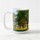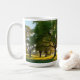 Ceramic mug with a green field and big tree artwork, printed on one side or as a full wrap.
