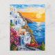Ett fantastiskt Quilling-konstverk av en solnedgång i Santorini Oia, som fångar de varma färgerna och den charmiga arkitekturen på denna ikoniska grekiska ö.