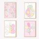 Quilt Art Print Set: Flower on Pink Background Poster