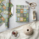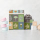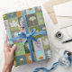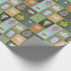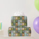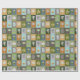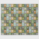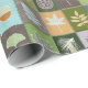 Papper för omslagning av Löv med kall och grönt har , grått, gult och blått mönster med ett faux quilt-utseende med faux applicque of löv, gräs cones and acorns. Du kan göra så att löven skrivs ut mindre eller större på den här figursättningen pappert. Ett fint mönster-presentbyte för dina gåvor.