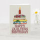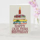 En hög av färgrika quilters´material med ett stort rött stearinljus gör överst en perfekt födelsedagtårta - den lyckliga Quilters födelsedagen! Personifiera detta kort och tillfoga ditt egna meddelande.