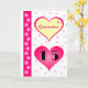 Ett modernt födelsedagskort på spanska för en Quinceañera firande. Det finns två stora hjärtan, den ena är gräddproppad i rosa, den andra är djup rosa med siffran 15 på den. I bakgrunden finns en spridning av rosa nummer 15 och på den lämnat sidan en matchande rosa "band" som dekorerats med stiliserade rosa blommor. Meddelandet inuti är anpassade, eller så kan du använda det angivna "Que todos tus sueños se hagan realidad" (="Alla dina drömmar är sanna").