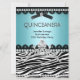 Quinceanera 15:e Blue Teal Black Zebra Tiara Inbjudningar