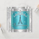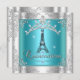 Quinceanera 15 Teal Blue Silver Tiara Eiffel Torn Inbjudningar