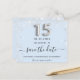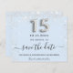 Ett giftigt och trendig Spara datumkortet för en Quinceañera, 15:e födelsedagsfesten. Blåblå bakgrund som dekoreras med faux glitter stoft. Anpassa och lägg till datum och namn/ålder. Texten: Spara datumet skrivs med ett stort trendig-handskript i stil. Nummer 15 med ett stil-teckensnitt med ballong.