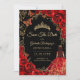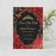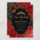 Black red and gold Quinceanera celebration Save The Date card. Features brunette girl in ball gown dress, script font, gold butterflies, watercolor roses and tiara. Perfect for an elegant princess style glam celebration. Personalize with your own details. Printed Zazzle cards or instant download digital printable template.