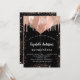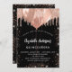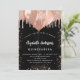 En svart bakgrund. Dekorerad med ro guld, faux glitter-droppar, färgdroppstift och ballonger. Anpassa och lägg till information om namn, ålder och party. Namn är skrivet med ett handskript i stil