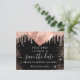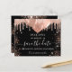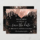 Ett giftigt och trendig Spara datumkortet för en Quinceañera, 15:e födelsedagsfesten. En svart bakgrund som dekoreras med droppar, gnistor och ballonger i ro guld. Anpassa och lägg till datum och namn/ålder. Texten: Spara datumet skrivs med ett stort trendig-handskript i stil.